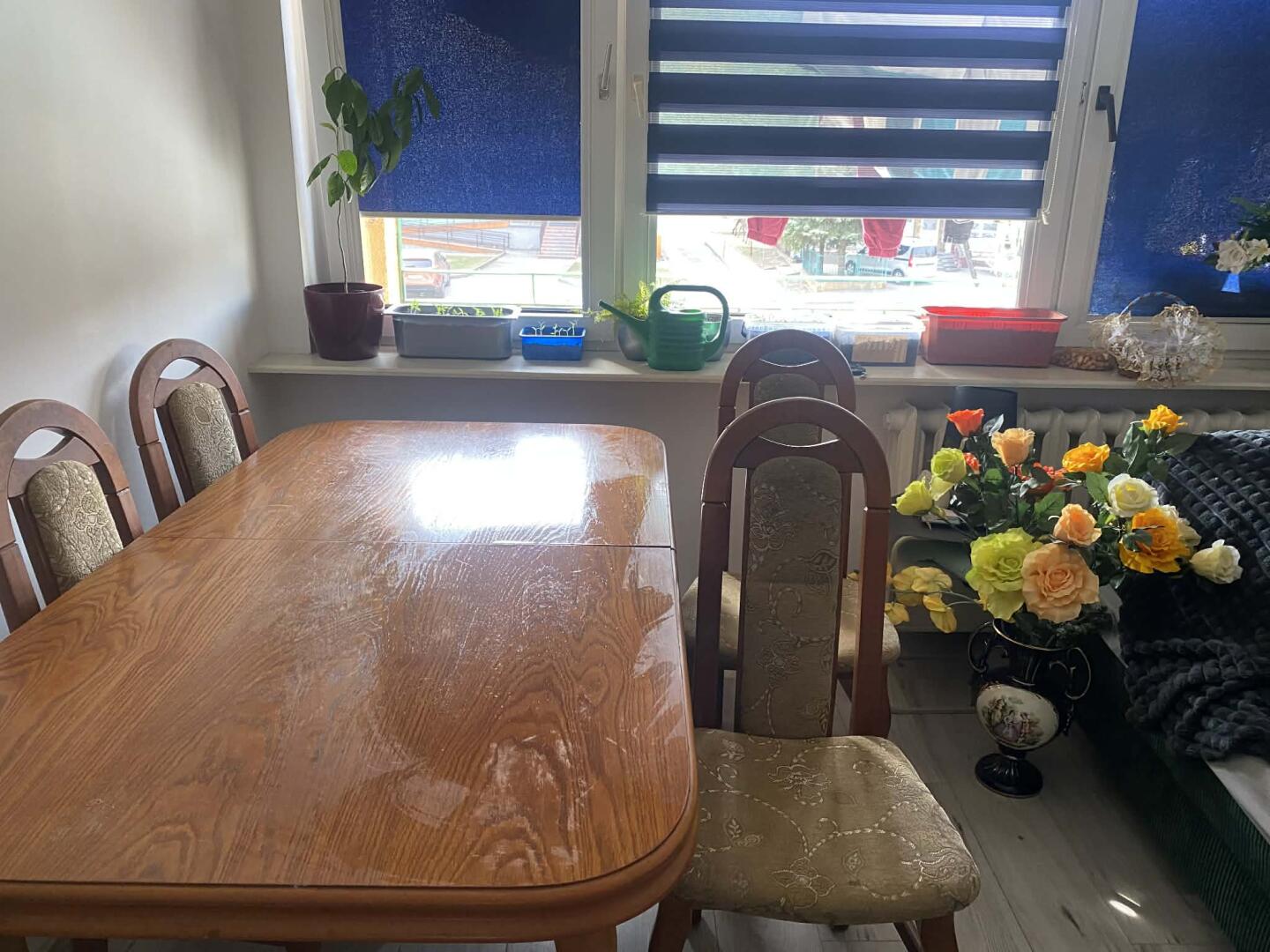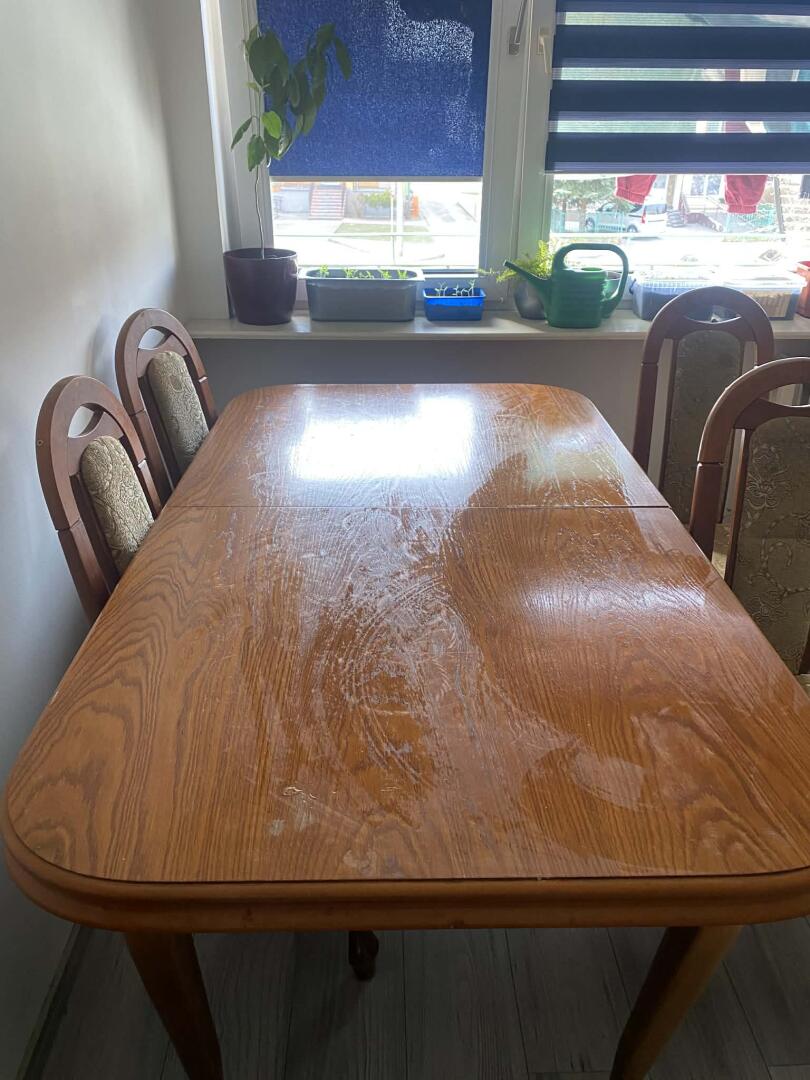 Sprzedam stół 160×88 po rozłożeniu 200×88 wraz z krzesłami 6 krzeseł . Cena do negocjacji