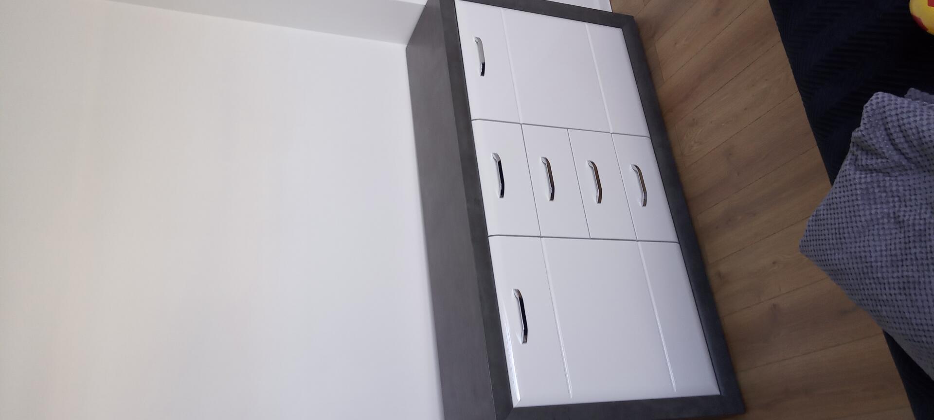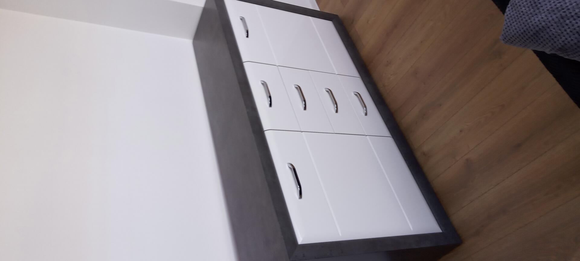 Sprzedam komodę z szufladami i drzwiami firmy Lenox,wybarwienie frontu biały, wybarwienie korpusu beton ciemnoszary