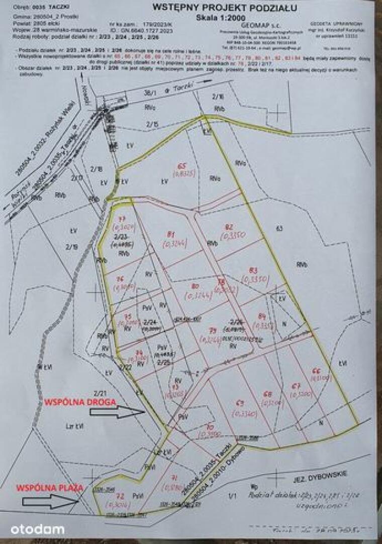 Działki o numerach: 71, 72, 73, 74 są sprzedane.