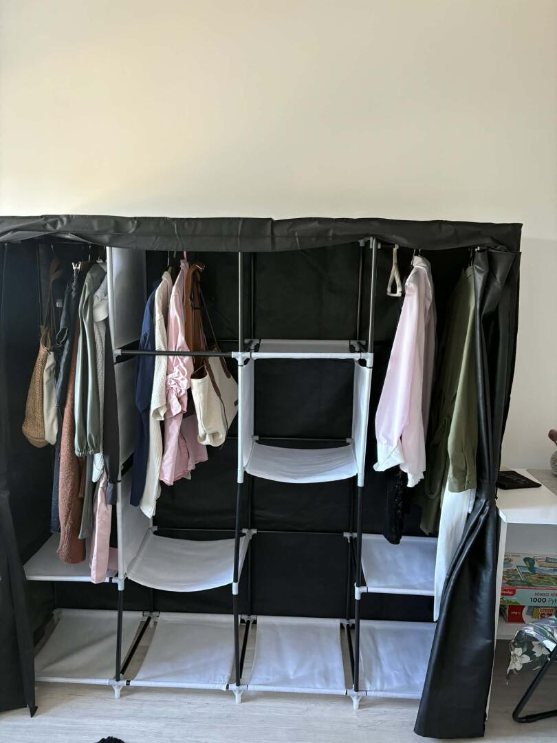 Sprzedam szafę materiałową zapinana na zamek, czarna, boczne kieszonki 175x150x45, stan bdb, używana pół roku.Polecam