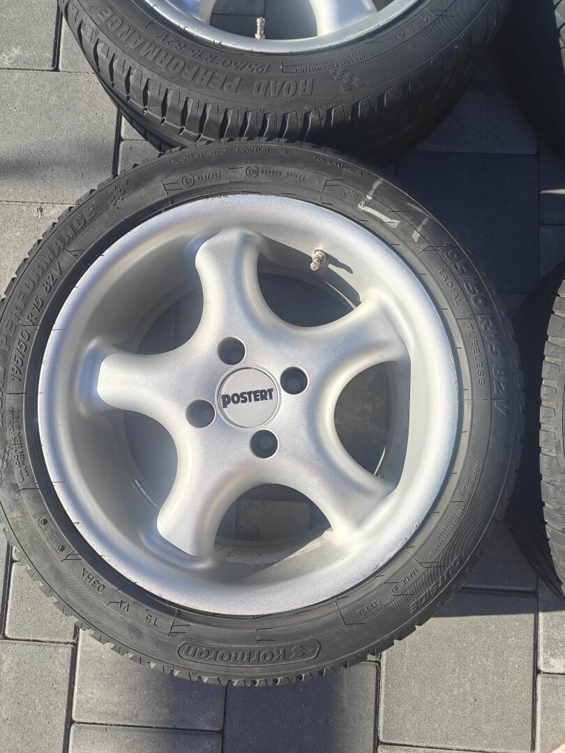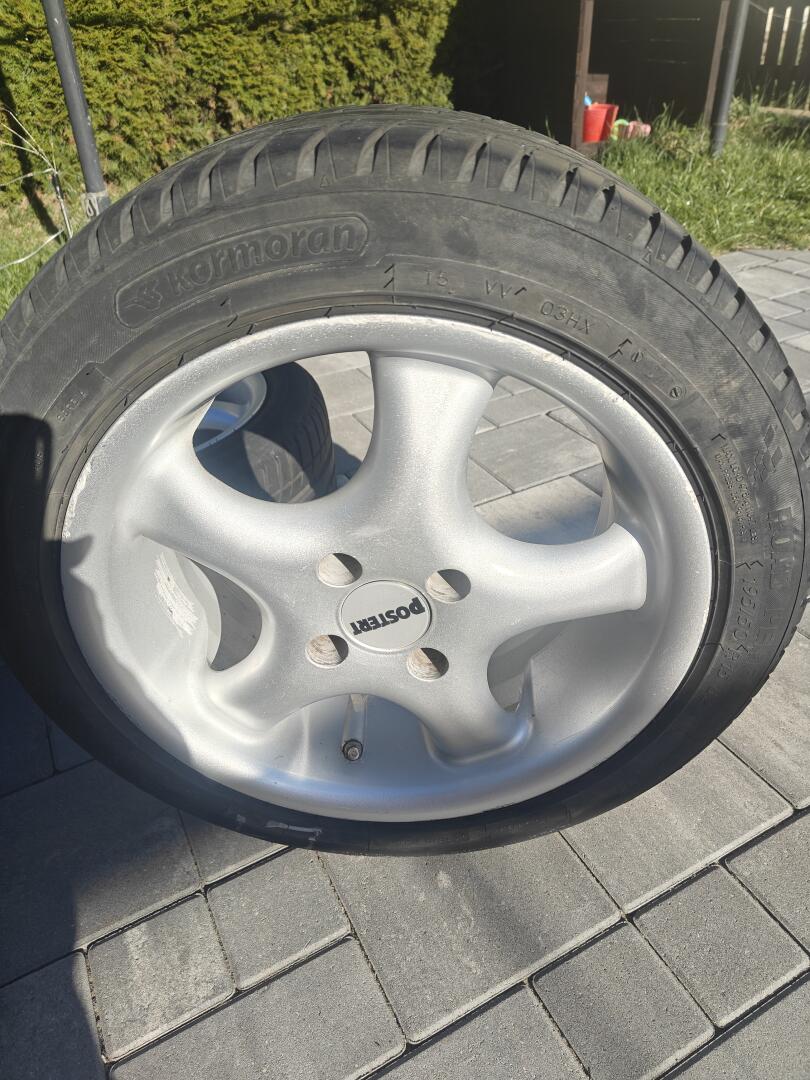 Felgi 15, 4x100 wraz z oponami Kormoran 195/50 R15 2018 rok, felgi proste nie spawane noszące ślady użytkowania z wszystkimi dekielkami, opony w stanie dobrym, więcej informacji tel.